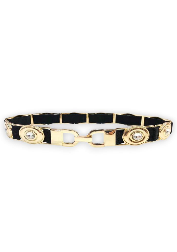 Chic ζώνη/λάστιχο με χρυσά μεταλλικά στοιχεία και strass Υλικό: Μέταλλο / Λάστιχο / Strass Χρώμα: Μαύρο/Χρυσό Διαστάσεις: 70 x 2εκ.